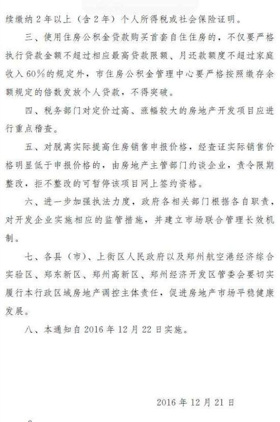 郑州限购升级:河南省郑州市限购政策第三次升级,郑州市发布《关于进一步加强房地产调控工作的通知 》12月22日起实施。在郑州180平方米以上住房限购,外地人在郑州限购。