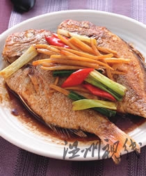 【材料】 赤宗鱼 2条 姜丝 15公克 葱段 10公克