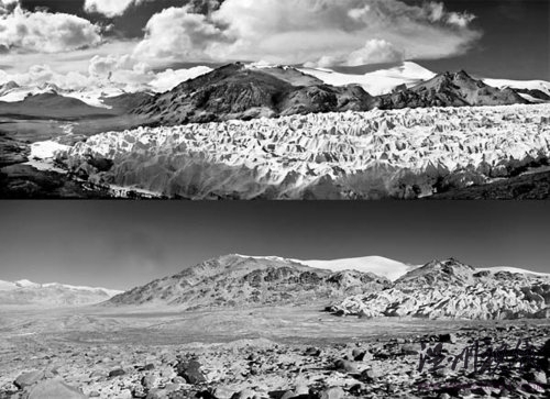 和30年前的照片对比,冰川的冰舌部分退缩了1公里左右
