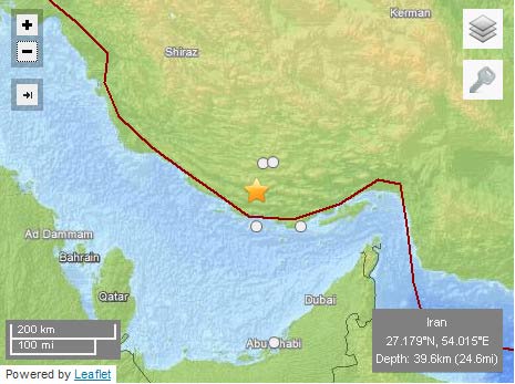 今日(6日)上午伊朗地震了,中新网电据外媒报道,伊朗Gerash市附近在当地时间上午6点27分14秒发生了里氏5.1级地震,地震震源位于伊朗Gerash市西南55公里的地方,为北纬27.179°,东经54.015°,地震震源深度为39.6公里。地震受灾情况还在统计中。