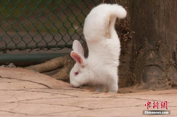 广西兔子倒立行走:广西柳州动物园有一只兔子能够倒立行走,原来是因为这只兔子先天后腿残疾,只能用前腿倒立行走。这只被称为“兔坚强”的白兔确实很坚强,学会倒立行走憨萌可爱。
