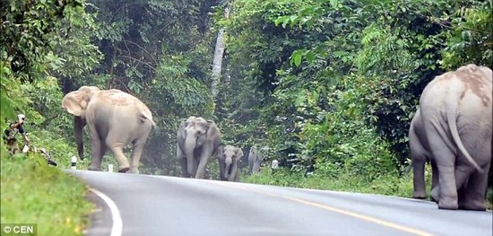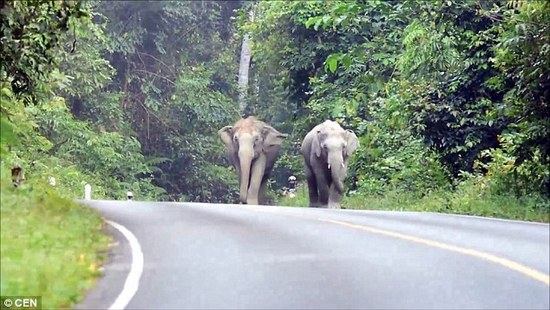 泰国一个国家公园里,发生摩托遭大象围攻的事件,刚好被经过的一辆汽车的行车记录仪拍摄下整个过程,地点就是在Khao Yai 国家公园,大象围攻摩托车可能是大象对摩托车发出的低频声音烦躁。