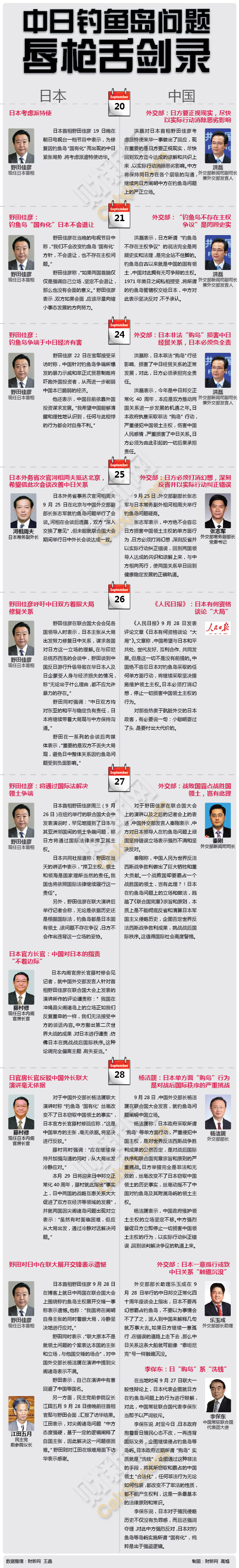 日本“国有化”钓鱼岛引发的中日关系危机可能还会继续发展,下面是对9月18日“九•一八”事变81周年纪念日之后,中日双方各自的表态的整理。