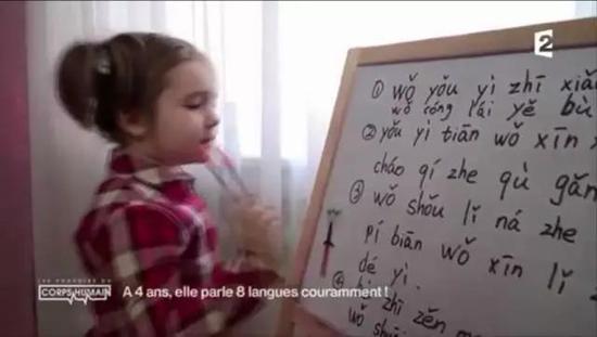5岁通晓8门语言:法国电视台关于贝拉的报道截图:在报道中贝拉唱中文儿歌