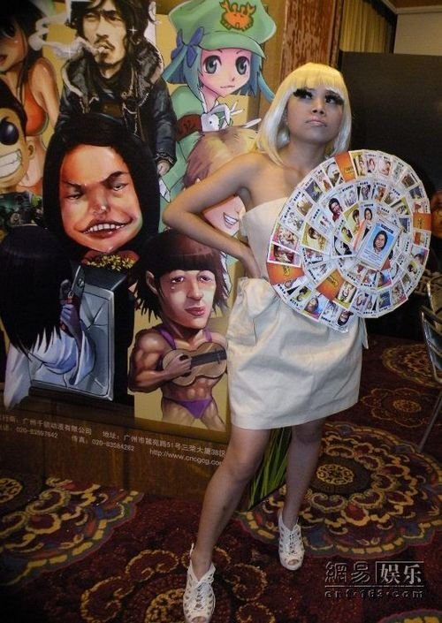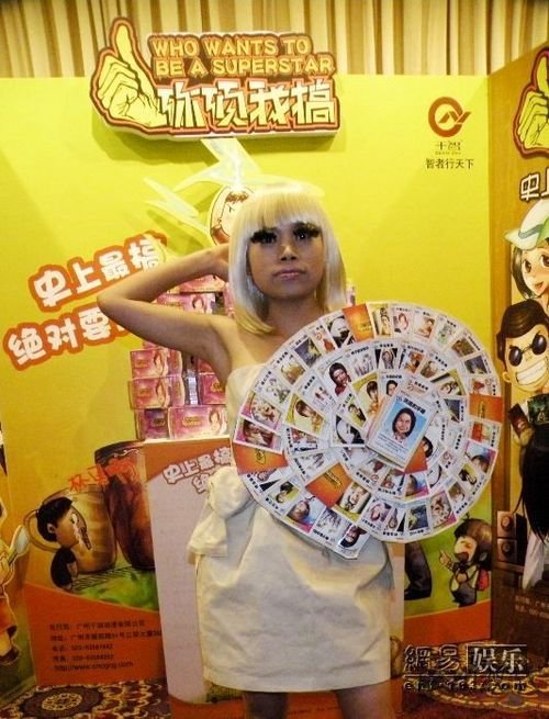网易娱乐6月21日讯(图文/粤港报道组 Mandy报道)被网友越骂越红的凤姐罗玉凤,6月20日来到广州出席一款桌面游 戏举办的“顶搞红人时代”首发会,凤姐头戴白色假发、化上夸张的妆容模仿另类歌姬Lady GaGa,雷翻全场。被问到近日网上疯传疑似自己的裸照,凤姐矢口否认称照片是移花接木。