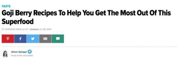 其实,The Huffington Post 在2012年的时候就专门为枸杞(Goji Berry)写了一篇食谱,里面介绍了19种枸杞的吃法。