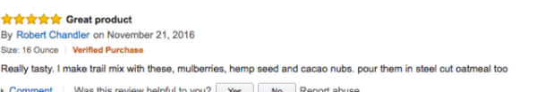 “真的超好吃!你还可以把他们和Hemp 籽混合,或者放在燕麦粥里!”
