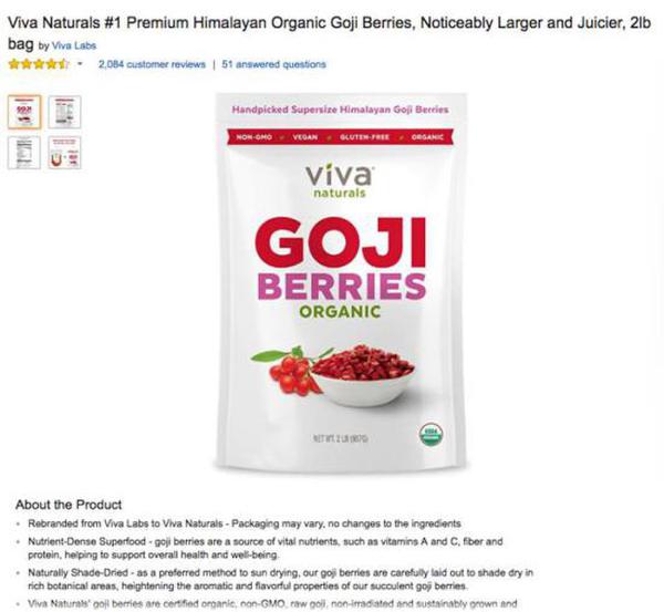 但是,这些并不能影响国外网友对枸杞的疯狂喜爱,这个Viva 品牌的枸杞更是收到了2084个好评。