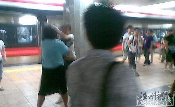 近日,网曝北京地铁西单站乘客在等车的时候发生了“暴力门”事件,由于地铁里人员较多,乘客之间发生了碰撞,一位穿蓝色T恤的大妈发生口角后推攘一女子,并说出脏话骂,结果发生了下面的一幕。