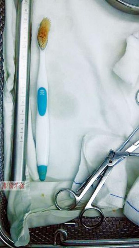 据吞牙刷女孩的室友回忆,当晚小丽想刷了牙后再外出吃饭。几分钟后,她发现小丽在盥洗室内抠喉干呕,一问才知道,她将牙刷吞到肚子里去了……