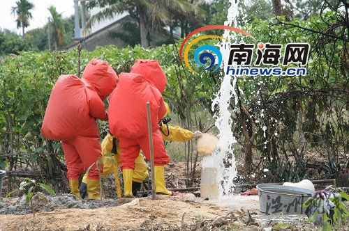 5月19日下午13时30分,三亚市崖城镇长山小村一村民在自家芒果园打水井时引燃不明气体,从水井内喷射出三四米高的火焰,当消防队员扑灭火时水井内又喷射出数米水柱,所幸此次事故没有造成人员伤亡,事故原因还在进一步调查当中。