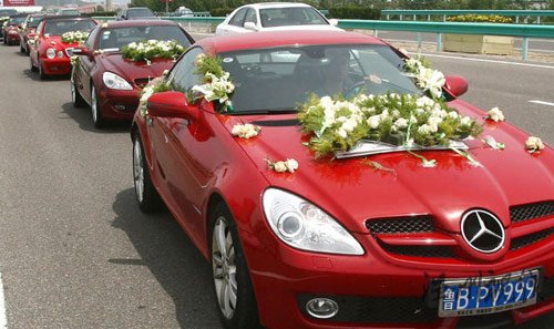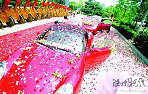 7月7日上午7时许,青岛市民杨先生拨打本报热线96663反映,他路过台东一个花店时看到,路边停着包括保时捷911、奔驰SLK350、宝马Z4、奥迪TT 在内的40多辆豪车,花店的工作人员正在给每辆车扎花和丝带。