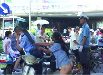 新华报业网讯 昨天下午1点左右,在南京市中央门立交桥下,一名骑电动三轮车的女车主张某,因骑反道违章带客撞到一骑自行车行人。交警六大队的一名交警赶来处理事故要求暂扣车时,该女车主突然脱掉裤子,用裤子抽打交警,直至将交警打昏在地。