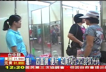 记者:“因为不管是厕所的这道门,或是里面其它3面镜子,左边、后面、右边,四周都可以看得到自己正在如厕的样子。”
