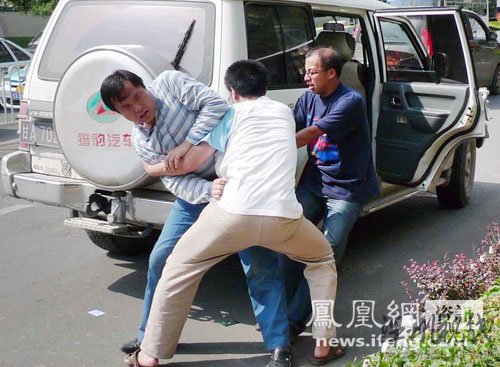 当日下午,记者赶到现场时,路边停了一辆猎豹车(车号为甘A·70223),距离猎豹车不远的地方,停着一辆31路公交车。在两车之间,一位酩酊大醉的男子正在破口大骂。“这个人太猖狂了。”目击者王先生说,当时,猎豹车从中山林十字一家酒店出来后向西行驶,当车行驶至中山林十字西北角,该车突然倒车,与停靠在后面的一辆31路公交车相撞。车辆相撞后,车上下来3名醉汉,不由分说,上前开始对公交司机拳打脚踢,车上十多名乘客中,其中两名女乘客实在看不惯他们一行人的粗暴蛮横行为,便上前进行劝说。谁知,几名喝得酩酊大醉的男子抓住两名女乘客就是一顿暴打,差一点将其中一名女乘客打翻在地。“他们见谁打谁,真是无法无天!”王先生说,看到女乘客被打后,车上一名男乘客上前阻止对方,但其中戴眼镜的一名酗酒男子,一拳打过去,致使男乘客脸部受伤。3名男子的行为引起公愤,许多行人和乘客纷纷予以指责,但3名男子仍气焰嚣张,见谁打谁。无奈之下,有人打电话报警。