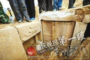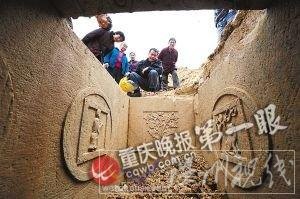 昨日,西永镇文化服务中心主任祁华富介绍,此处是建成渝快速铁路的工地。上周六对山体施工时,挖掘机刨到硬物,再刨则溅出火花———铁齿撞击到石质坚硬的墓室盖。接下来,村委会接到施工方通报,镇里庚即派专人昼夜值守。
