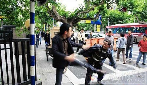 5月23日晚,一网友在某知名论坛曝出一组照片。照片中,一名男子在南京街头当众殴打一名看上去有50多岁的三轮车夫,施暴者年龄30岁左右。单从照片上看,施暴者对三轮车夫接连用脚踹,车夫无力招架。【点击查看画报:别克男飞踹三脚车夫】