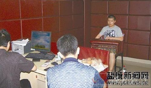 嫌疑人林某接受警方讯问。