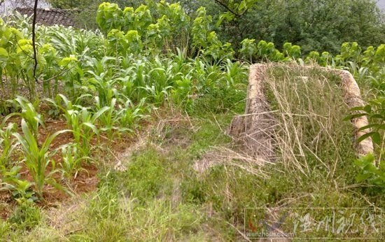王家飞的坟墓。王家飞被埋葬在李昌奎家的庄稼地里。