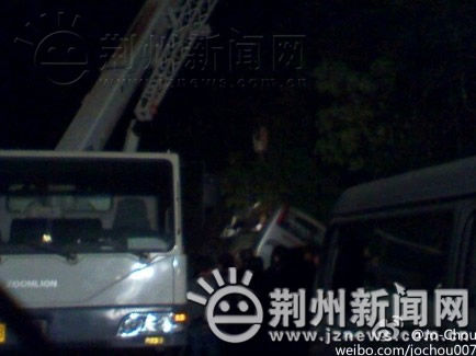 永顺县车祸现场:吊车已将事故车辆吊正,车内人员已全部救出
