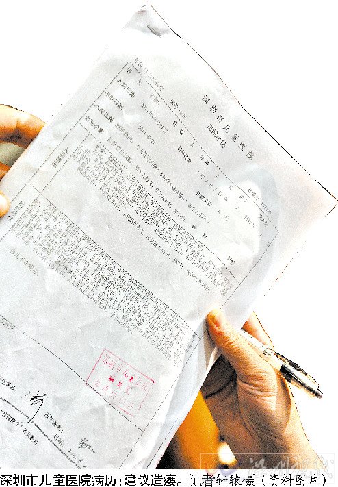 据了解,9月8日深圳媒体以《十万元手术八毛钱治愈?》为题报道:深圳陈先生刚出生的儿子被深圳市儿童医院怀疑为先天性巨结肠,建议进行造瘘活检手术,手术费超过十万。而他带儿子到广州市儿童医院就诊,接诊医生开了八毛钱“就治好了”。 陈先生愤然向深圳市儿童医院索赔。