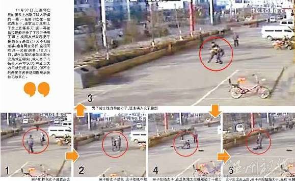 事件中对围观群众的“冷漠”的说法引起关注。中国海洋大学社会科学部王付欣老师认为:“对于当时围观的市民,网友谴责他们冷漠的同时,也该想想挺身而出好,还是马上报警好。不要动不动就轻言冷漠,这也是不负责任,是网络暴力。公众在不了解事实真相的情况下不要轻易对事件进行评论,否则这种乱谴责也会导致冷漠蔓延以及谣言成灾。”记者 纪国亮 (综合半岛网-城市信报)