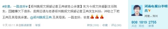 《郑州晚报》娱乐记者王冉与母被赌徒丈夫杀死原文链接已经打不开了。