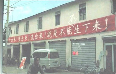 中国某地的计划生育标语口号。