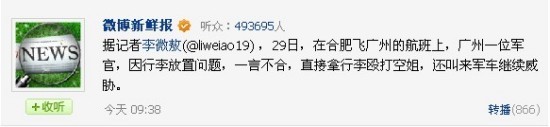 方大国殴打空姐微博引关注