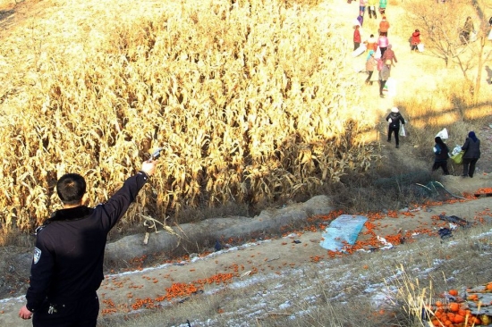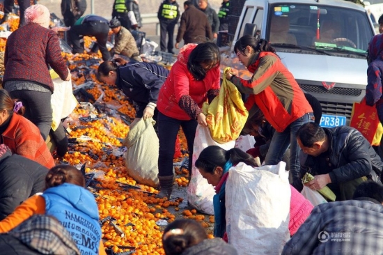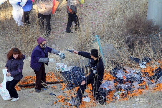 兰州村民哄抢桔子:抢了桔子丢了人。