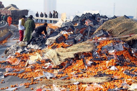 兰州哄抢桔子的村民,这是明抢啊!人家大货车司机遭遇意外事故,已经是落难了,人到困难非但没有伸援手,还要哄抢他人财物呀,真是没有良心啊!