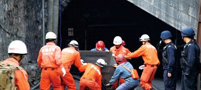 云南富源红土田煤矿瓦斯爆炸事故救援现场搜救人员下井救援。新华社 发