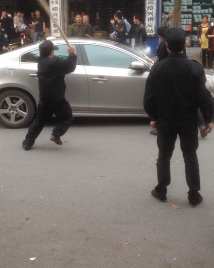 据网友爆料,昨天上午9点,在绍兴北海街道兴文桥直街正泰电器店门口,发生城管砸车打人的事。其中一城管左脚撑地,右脚以左脚为中心轴将重心下压,配合右脚奋力往前,增大抓地力释放最大能量,双臂高举过头顶狠狠砸向小汽车。据说,这些暴徒城管都是临时工,是在社会上聘请过来的。