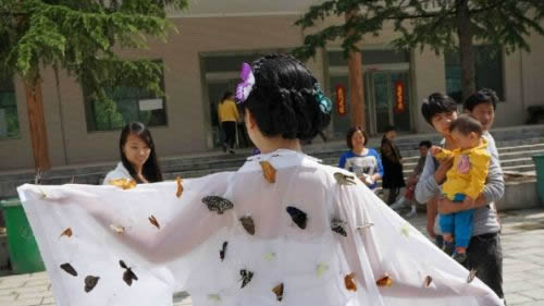 扎死蝴蝶装扮仙子:2014年5月24日,河南宝天曼景区首届“蝴蝶节”扎死上百活蝴蝶装扮“蝴蝶仙子”的裙子。仙子的白裙是用钢针把上百只活蝴蝶扎在洁白的石榴裙上的。河南南召宝天曼景区这种做法被批残忍,这个仙子也太丑,白白牺牲这么多蝴蝶。