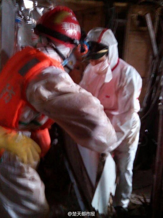 6月5日晚6点50分,东方之星出水,搜救人员和防疫人员进入船舱,进行搜寻和消毒等。
