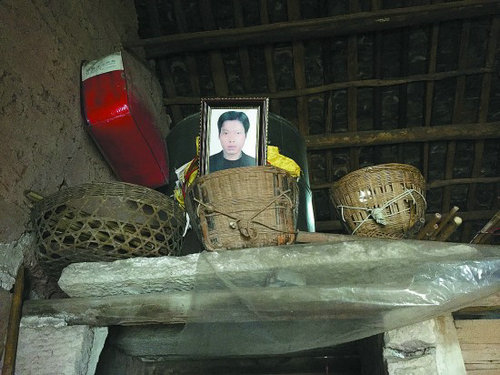 女子掐死家暴丈夫:周德军的遗像现在放在土屋里石仓上的一个箩筐里