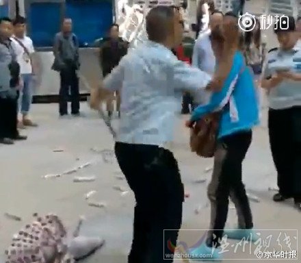 据悉,这段贵阳城管打人视频中,一名身穿城管制服的男子拿着竹竿狠狠的打了一棍女商贩。这名女商贩被打倒在地之后,拿起糖葫芦扔这名城管,结果这名男子走过去又是狠狠的一巴掌。