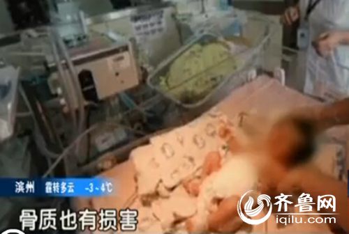 青岛市妇女儿童医院NICU副主任医师李跃说,“主要是明显的一个肺炎,在一个就是肝也大,肝功能有损害,骨质也有损害,这些情况说明孩子有感染的表现。”