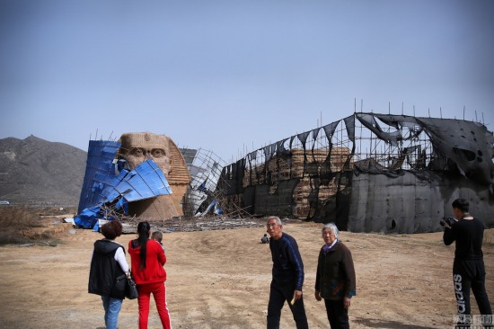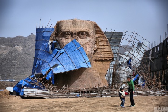 石家庄山寨狮身人面像被拆除:在河北石家庄长城影视基地内有一座山寨狮身人面像,由于遭到埃及方面投诉,2016年4月2日,山寨狮身人面被拆除。