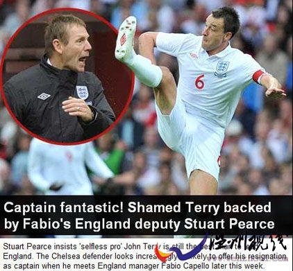 “有一点我可以肯定的,足球场上特里是一位出色的队长。在球场上他的无私、他的敬业以及他的表现都有目共睹。可以说他为英格兰做出了很大的贡献。”皮尔斯早接受《天空体育》的采访时谈到,“就事论事的话,特里的确触犯家庭的底线。但是一事归一事,我最担心的就是我们的球迷和媒体太拿这件事情来说事。”