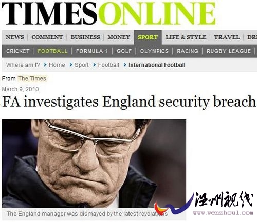 英国媒体《每日邮报》爆料,英格兰国家队主教练卡佩罗最近惊愕的发现英格兰队的世界杯准备工作遭到窃听和录音。该录音涉及的全部都是英格兰队的战术核心内容,如果这份窃听录音流传出去的话,英格兰队在南非世界杯将前景堪忧。
