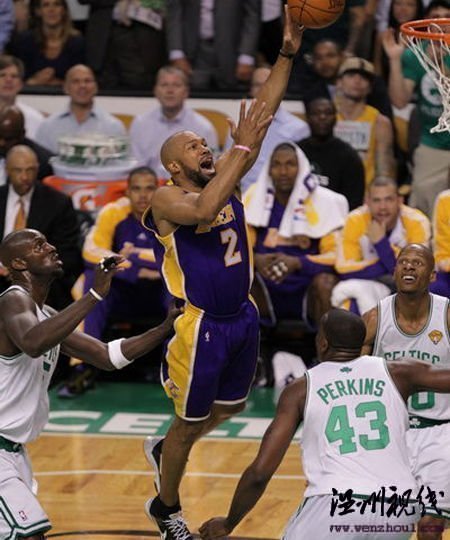不过,今夜的科比不像两年前那样孤单,因为有个人挺身而出,那就是陪伴科比多年的费舍尔。末节进行至9分15秒时,湖人仅仅握有1分的领先优势,凯尔特人占据场上的优势,形势对湖人极为不利,湖人必须有人站出来得分,在科比受限的情况下,费舍尔开始了得分突击,他拿球之后,毫不畏惧,沿着中路突破,越过对方的防守线,上篮得分。