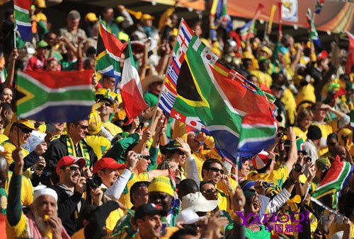 南非世界杯盛大开幕>>查看组图 球迷街头庆祝世界杯开幕 开幕式球迷创意