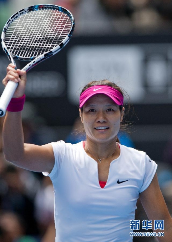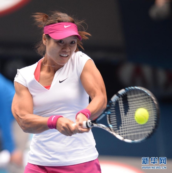 李娜进澳网四强:李娜在比赛中回球瞬间。