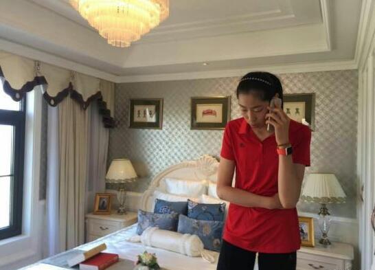 中国女排奖金可能是朱婷最多了,图为朱婷在洋房里打电话。