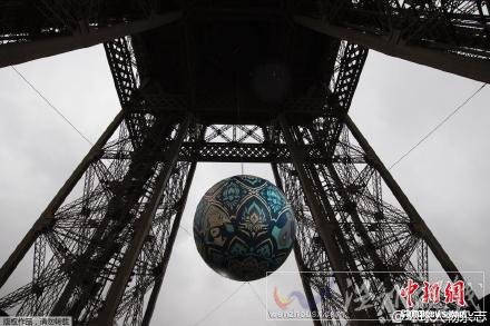 据悉,近日将会在巴黎召开巴黎气候变化大会,为了迎接这个会议,美国一个艺术家制作了这个“地球危机”大圆球。在经过和巴黎市政府的协商和巴黎铁塔相关部门的审核后,他们将这个大圆球挂在巴黎铁塔上。