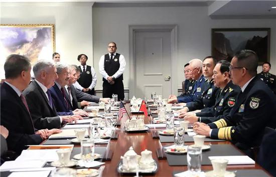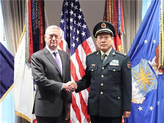 美方无意围堵中国:美国国防部长马蒂斯与国务委员兼国防部长魏凤和举行会谈。