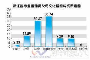 李教授还对浙江省专业运动员及其父母的文化程度进行了调查。