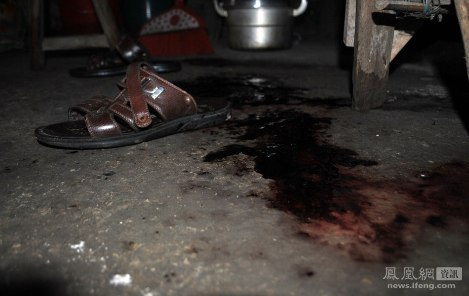 男子睡梦中被人割掉下体,图为案发现场地上的血迹。