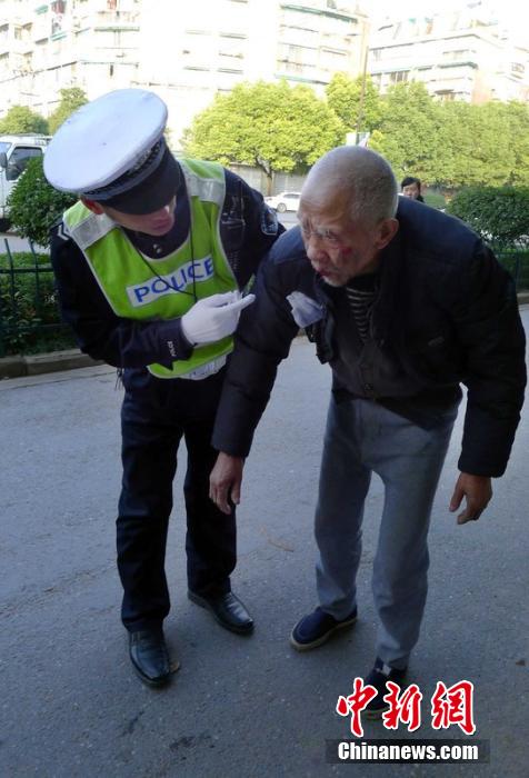 浙江金华老人摔倒不敢扶:好心市民叫来协警扶起老人。